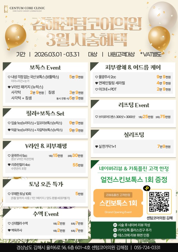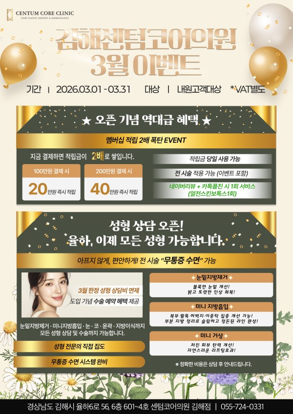 페이지 정보 작성자 최고관리자 댓글 0건 조회 394회 작성일 26-02-25 17:59 목록 본문 진행중 센텀코어의원 김해점 3월 이벤트 안내 2026-03-01 ~ 2026-03-31 센텀코어의원 김해점 3월 이벤트 안내 센텀코어의원 김해점 3월 이벤트 안내 이벤트 신청하기 이벤트 신청하기 이전글에버클V 런칭 이벤트 안내 26.02.25 댓글 0 댓글목록 등록된 댓글이 없습니다.